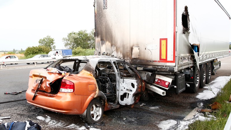 Egy volkswagen 27 éves sofőrje belehajtott az előtte közlekedő mercedes tehergépkocsiba.